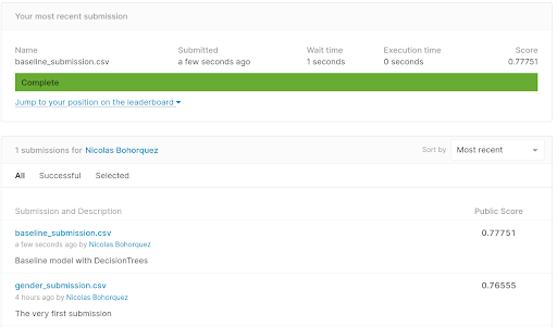 Kaggle’s Titanic competition has been around for years and currently has more than 160,000 entries! It’s unlikely that our quick and dirty approach is going to provide us with winning results, but it will get you much more familiar with the Kaggle platform, which is one of the best for learning Machine Learning.