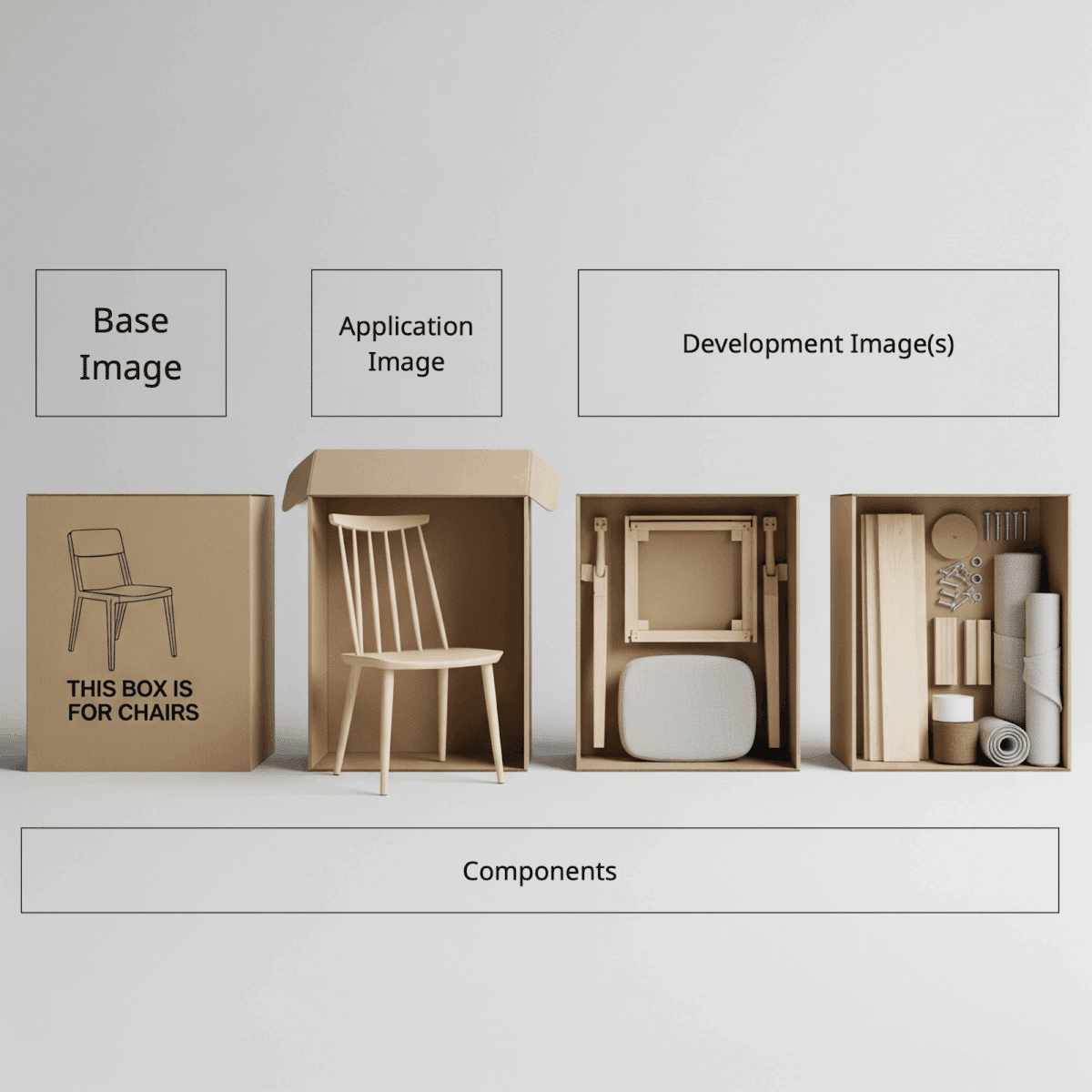 Base Images Similar to a box used to securely ship the contents of your furniture, a base image is a minimal, production container intended for packaging your pre-built applications for shipment. These images include only what is required to ensure that your applications are deployed securely to their final destination. We currently provide several base container images for various programming languages and frameworks, including Python, Java, Node.js, and more. Application Images Application images represent a fully assembled piece of furniture that is delivered to your door. These images are ready to use with no further modifications and are designed to be used directly as drop-in replacements for popular databases, web servers, and more. Common examples often include applications such as Postgres and Nginx. Development Images Finally, similar to what you might receive from Ikea, Development images provide all of the necessary components, tools, and packaging to assemble your own piece of furniture. Development containers are lightweight, portable environments designed to standardize the developer experience. They package an entire environment, including tools, dependencies, and configurations, all into a containerized format. |