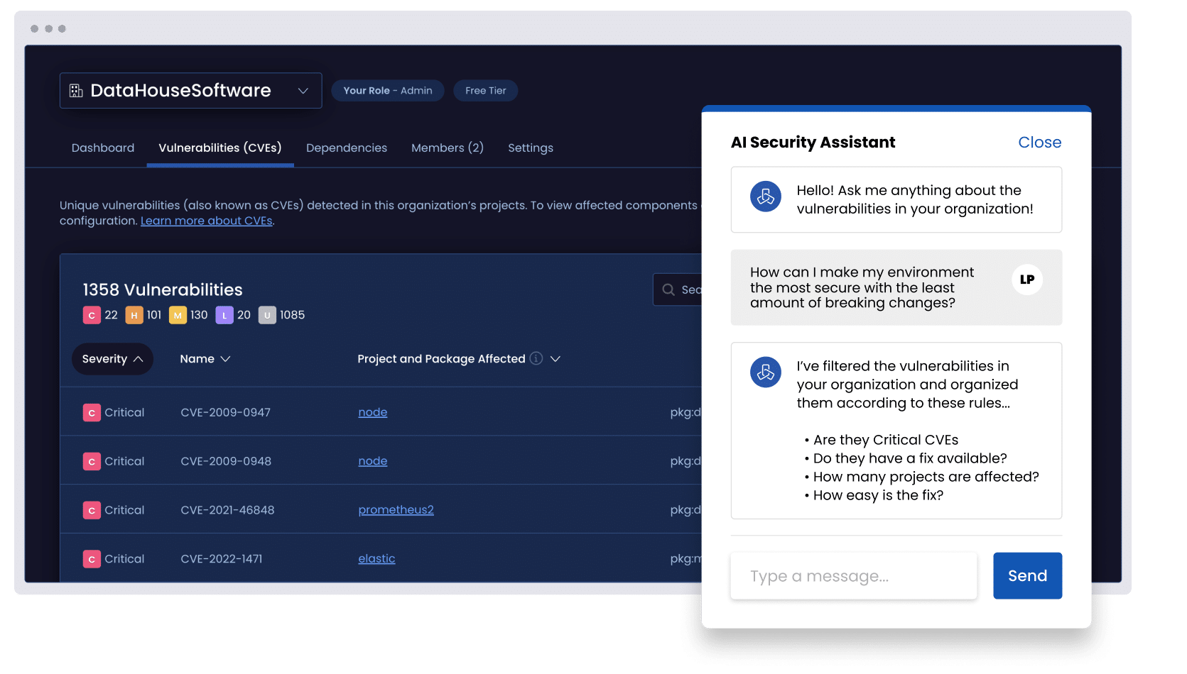 Our risk prioritization copilot uses AI to analyze exploitability, breaking changes, and dependencies so you only fix what matters most.