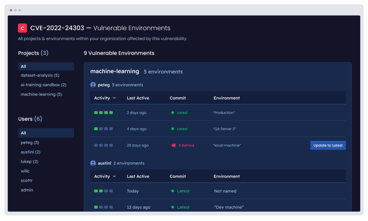 ActiveState’s vulnerability blast radius capability gives you unparalleled visibility into your open source landscape so you can map how far a vulnerability spreads across your application and fix what matters most, all without disrupting existing development workflows.
