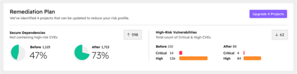 Given the severity of the vulnerability, its prevalence among your projects, and whether the upgrade target is a minor or major version, , you’ll be able to make informed decisions about how best to prioritize addressing security risk.