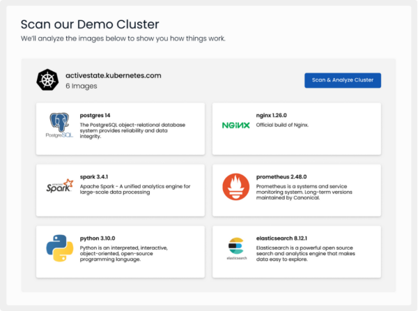 - Or contact our open source experts to scan your own Kubernetes clusters and other environments.