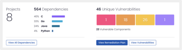 View vulnerabilities & dependencies on your dashboard to gain a comprehensive understanding of your software components.